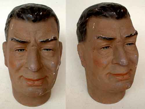 salte Schaufensterfigur, wie sie in Hutläden oder auch Brillengeschäften stand, Höhe 31 cm, leichte Gebrauchsspuren, das Gesicht hat frapierende Ähnlichkeit mit unserem Bundeskanzler, selten Zustand 2- 130 Euro |