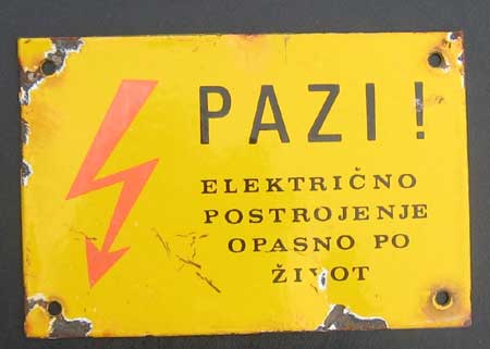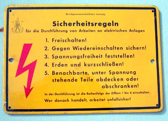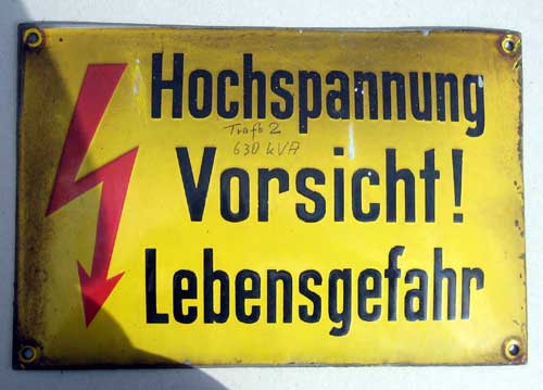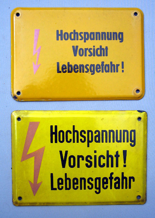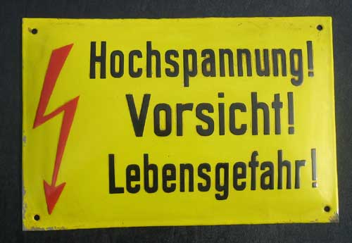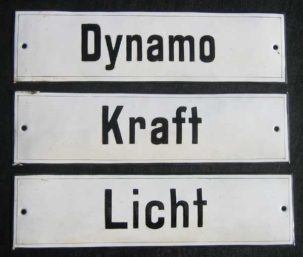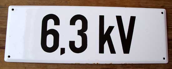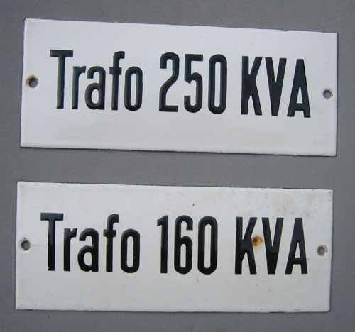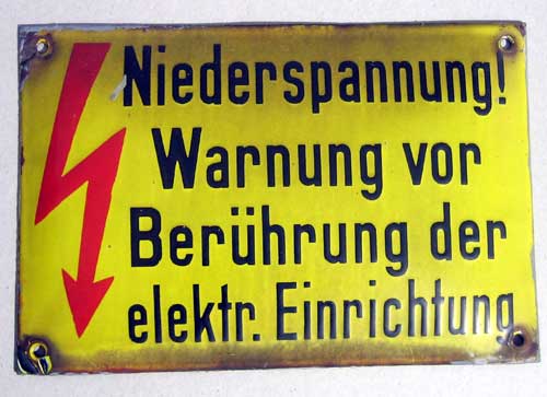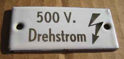 500 V Drehstrom kleines Emailschild, gewölbt, ca. 8 x 3 cm, mehrere Exemplare vorrätig Zustand 1 Stück 25 Euro |