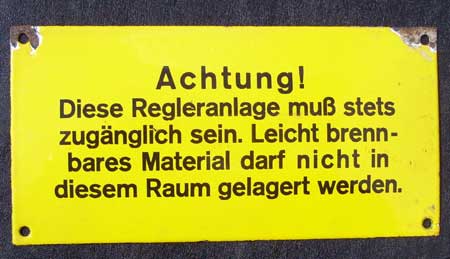 Blechschild mit Informationen zu einer Heizung, 30 x 40cm, 50er Jahre? Zustand 3 60 Euro |