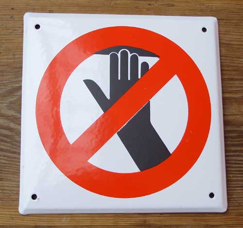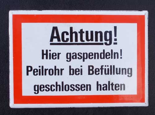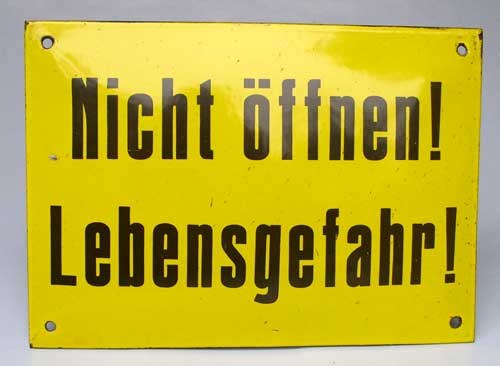 deutlicher Hinweis! , Emailleschild, gewölbt, dick schabloniert, ca 30 x 20 cm Zustand 1 95 Euro |