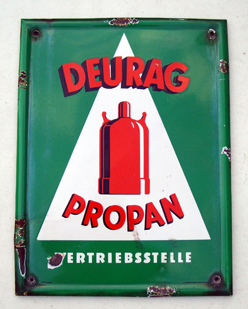 gewölbtes Emailschild, dick emailliert, um 1930, ca. 15 x 25 cm Zustand 3- 90 Euro |