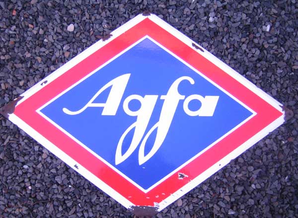 Emailleschild, schräg abgekantet, die berühmte Agfa Raute, ca 70 c 50 cm Zustand 2- 190 Euro |