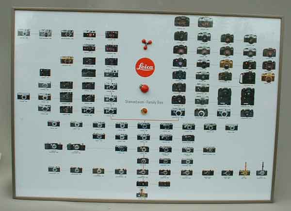 Geschichte der Leica Kameras als Stammbaum, im Rahmen, 50 x 72 cm, stammt aus einem aufgelösten FAchgeschäft Zustand 2 190 Euro |