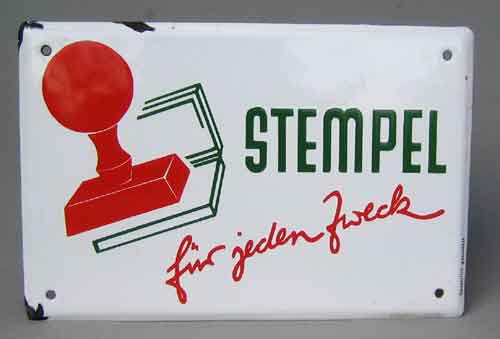 Emailleschild, gewölbt, schabloniert, ca 25 x 35 cm Zustand 2 150 Euro |