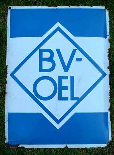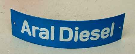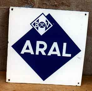 BV-Oel Aral Bochumer Verein gewölbtes Emailschild, 40 x 60 cm, schabloniert, ein Schaden in der Schrift farbecht retuschiert, selten Zustand 2- 390 Euro |