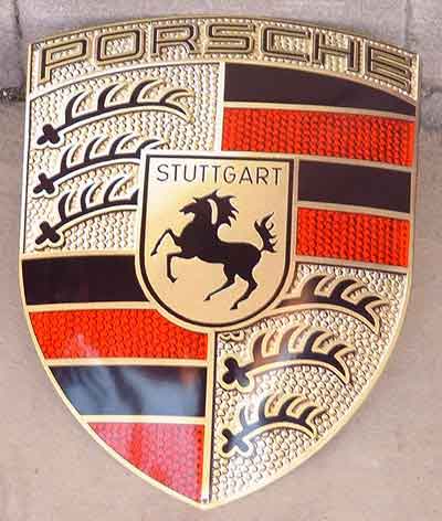 wunderschönes Emailschild, gewölbt, mit reliefartig dick aufgetragener Emaille, sehr massives und schweres Trägerblech, toller Glanz, 60 x 14 cm, ein ideales Geschenk für den Porsche Fahrer Zustand 0 160 Euro |