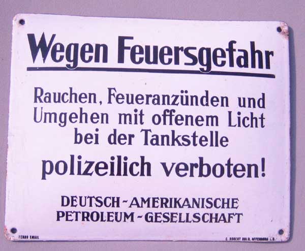 Emailleschild, flach, extrem selten, schabloniert, ca. 50 x 75 cm, einzig mir bekanntes Exemplar Zustand 2 1600 Euro |