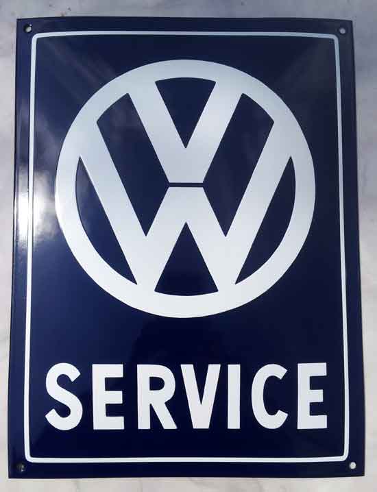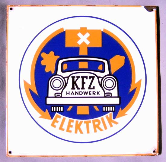 wunderschönes Emailschild, gewölbt, mit reliefartig dick aufgetragener Emaille, sehr massives und schweres Trägerblech, toller Glanz, 60 x 14 cm, ein ideales Geschenk für den Käferfahrer Zustand 0 85 Euro |
