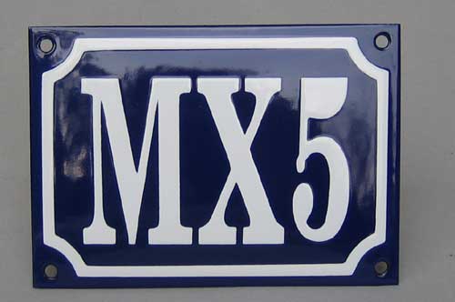 kleines Emailschild, gewölbt, dick schabloniert, in Form einer Hausnummer, ideal für die Garage, Werkstatt, Sammler oder als Geschenk für MX 5 Liebhaber, 12 x 10 cm Zustand 0 66 Euro inkl. Versand |