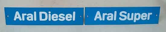 2 kleine Hinweisschilder, vermutlich von einer alten Zapfsäule, je 28 x 7, Stück 50,- Euro, zusammen 90,- Euro inklusive Versand, beachten Sie auch die gebogene Variante Zustand 1 |