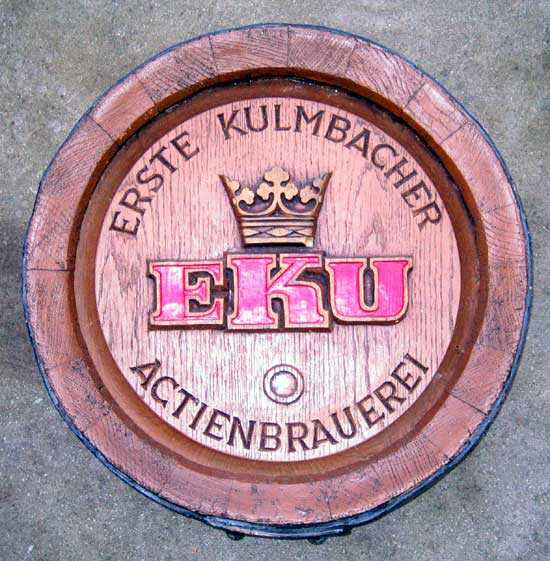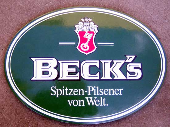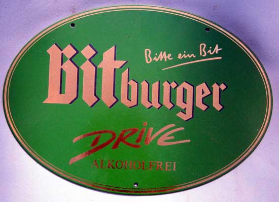 Bitburger große Variante des schönen Emailleschildes, 46 x 41 cm, schöne Farben und strahlendes Gold, schön emailliert, rückseitig mit Boss & Hahn bezeichnet, Zustand 1 120 Euro |