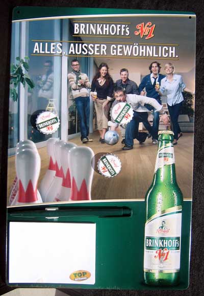 Werbepappe mit eingelassenem Blechschild, ca 20 x 30 cm, neueren Datums Zustand 1 30 Euro |