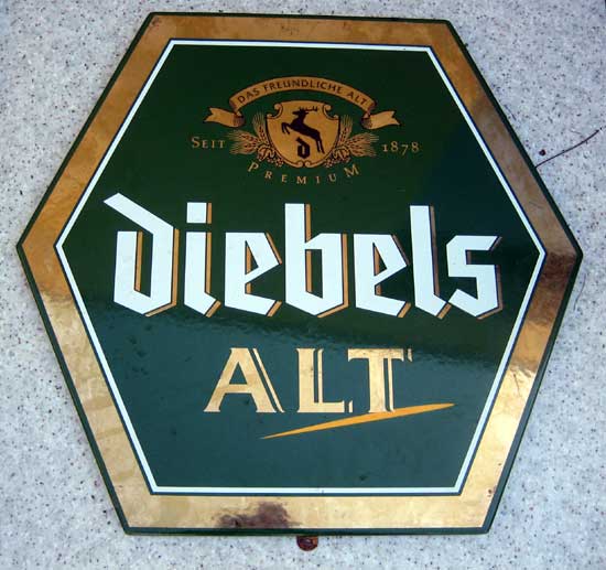Schlösser Alt Düsseldorf rundes Emailschild, flach, guter Glanz, Durchmesser 40 cm Zustand 2 90 Euro |