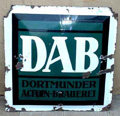 Dortmunder Actien Bier stark gewölbtes Emailleplakat mit uriger Ausstrahlung, 30er Jahre, 70 x 70 cm, sehr schwer Zustand 3 EURO 130,- |