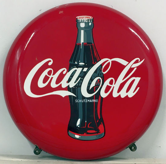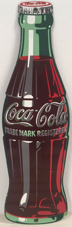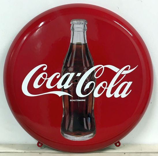 Coca-Cola delicious & refreshing Trade Mark Regd. Emailschild, Maße 46 x 28 cm, abgekantet Zustand 0- späte 1970'er/frühe 1980'er Jahre seltene emaillierte Version von Boos & Hahn Hersteller-Bez.: Boos & Hahn GmbH + Co. KG, Ortenberg Euro 140,- |