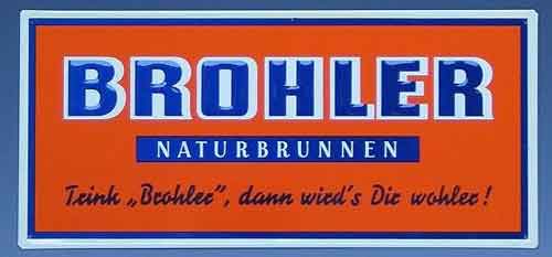 Brohlergeprägtes Blechschild, 45 x 20 cm, um 1950, mit dem bekannten Werbeslogan: "Trink Brohler, dann wirds Dir wohler" Zustand 1 50 Euro |