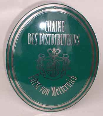 Fürst von Metternicht Sekt gewölbtes Emailschild, 30 x 25 cm, Chaine des Distributeurs Zustand 1 90 Euro |