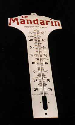 Mandarin schönes Werbethermometer der bekannten Getränkefirma, gewölbt, sehr schön Zuckergußartig emailliert, selten, Steigrohr felt, kann aber leicht ergänzt werden Zustand 1+ €uro 190,- |