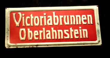 Victoriabrunnen kleines Blech-Türschild, gebördelter Rand und geprägte Schrift, schöner Jugenstilschriftzug um 1910, bez. Plakat-Industrie, Berlin, 26 x 12 cm, 75 €uro |