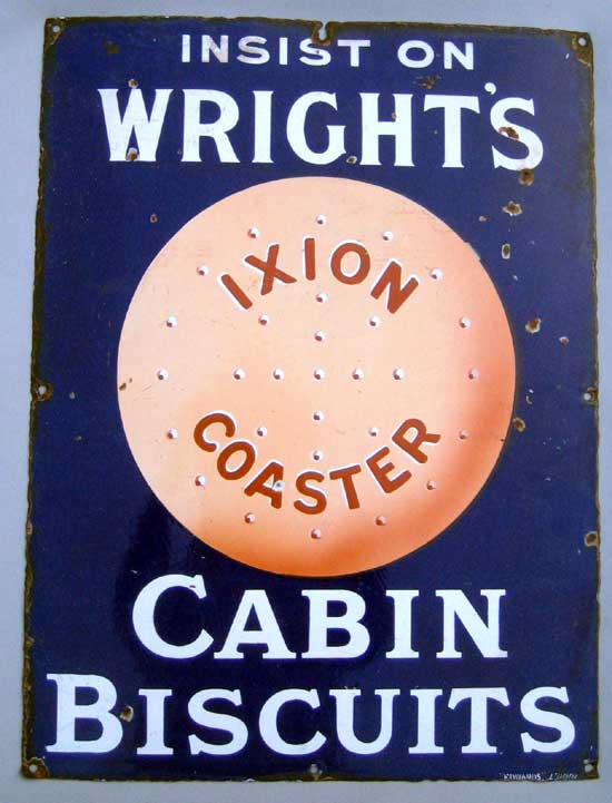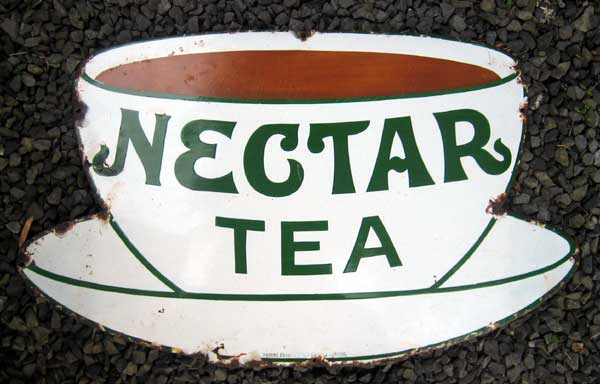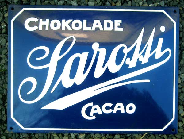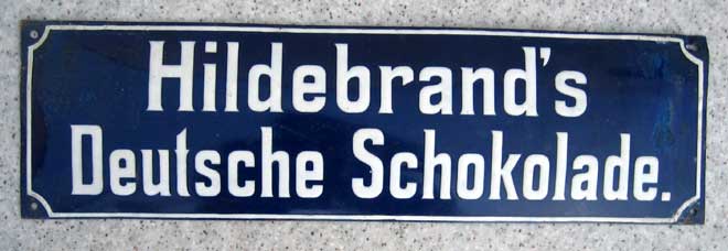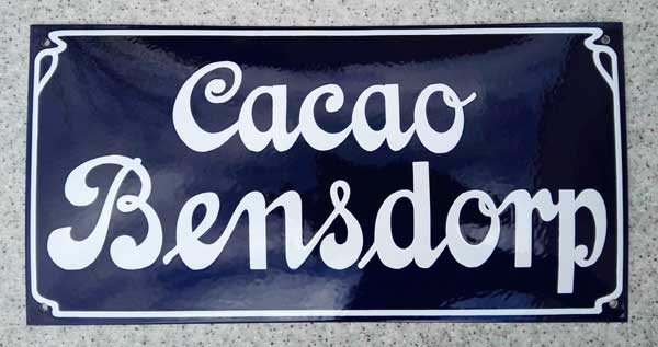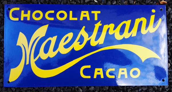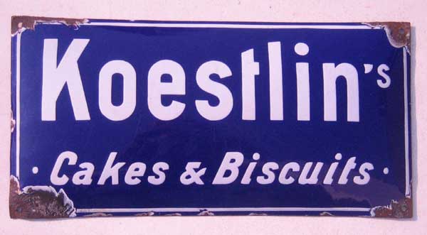 Emailleschild, gewölbt, 25 x 50 cm, um 1920, damals wurde gerne mit englischen Begriffen für ganz edle Waren im Kolonialsortiment geworben, ein sehr früher Anglizismus, sehr selten Zustand 2 280 Euro |