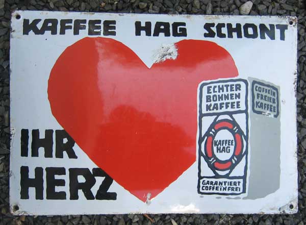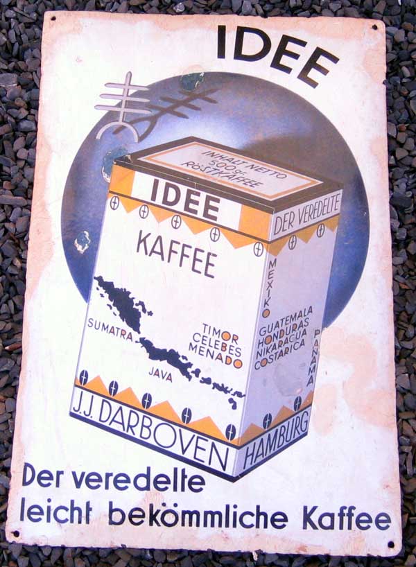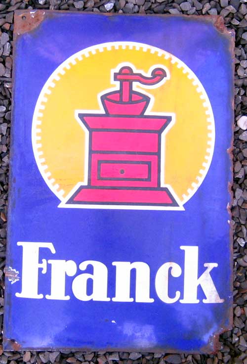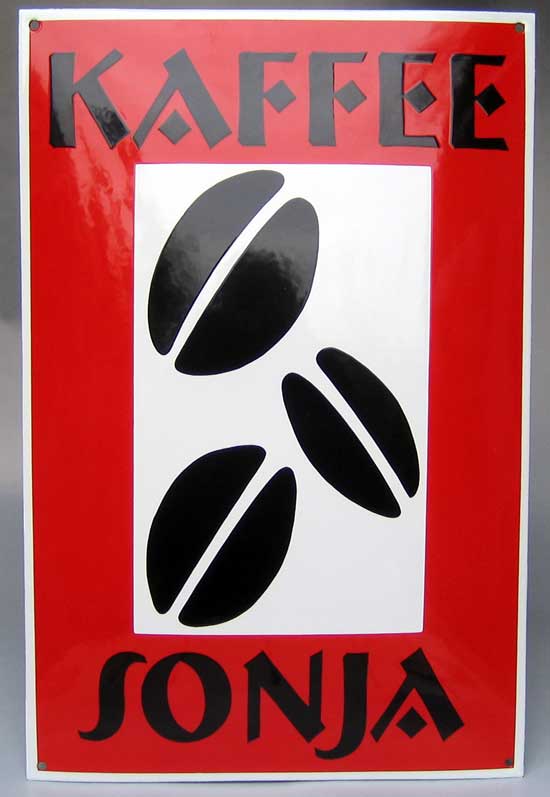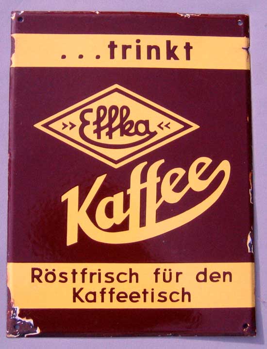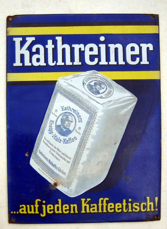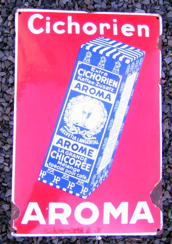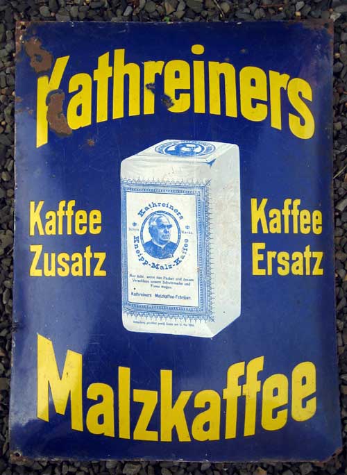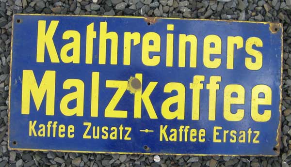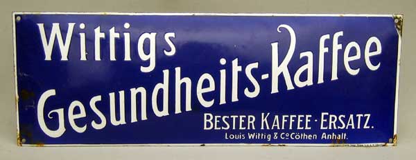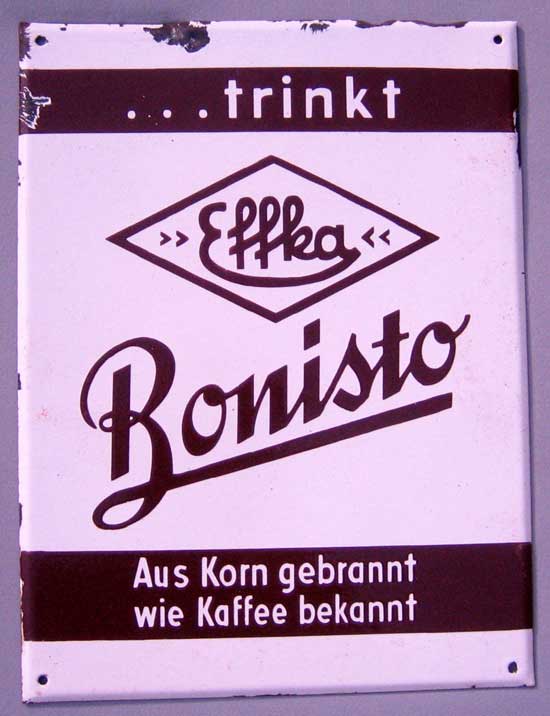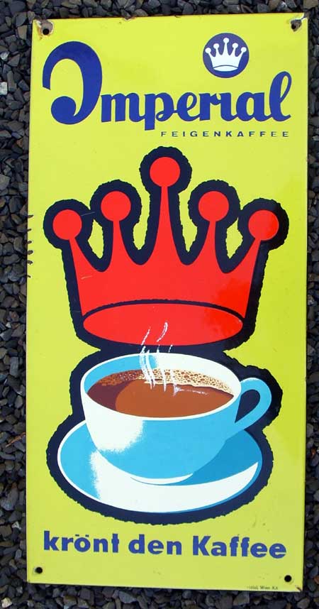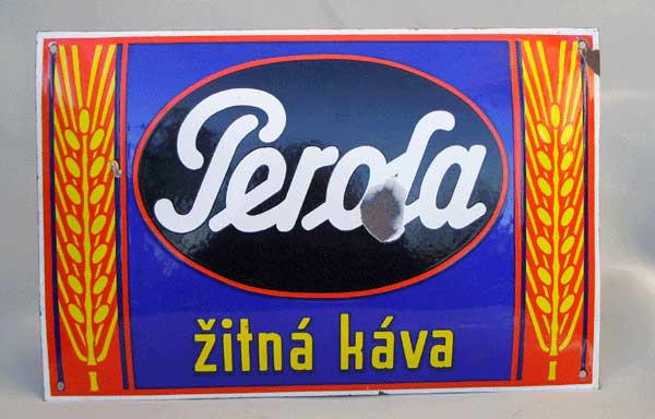 gewölbtes Emailschild, dick emailliert, um 1930, ein Ersatz für die teuren Kolonialwaren, meist eine Mischung aus Zichorie und MAlz - geröstet und gemahlen, Tschechien Zustand 3+ 190 Euro |