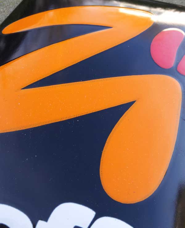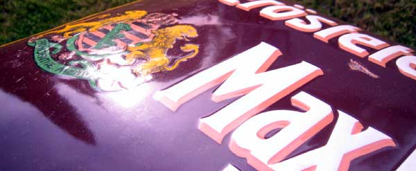 Emailleschild, gewölbt, dick schabloniert, ca 50 x 30 cm, 80er JAhre Zustand 1 150 Euro |