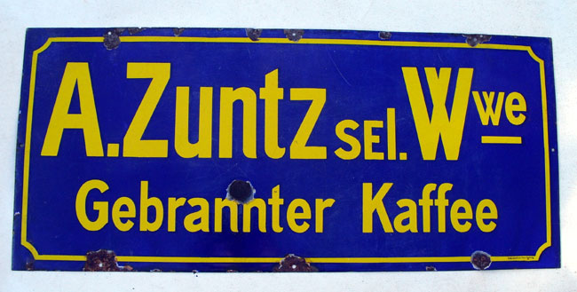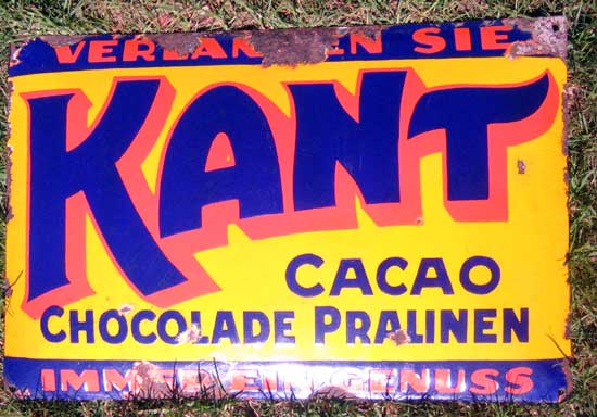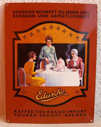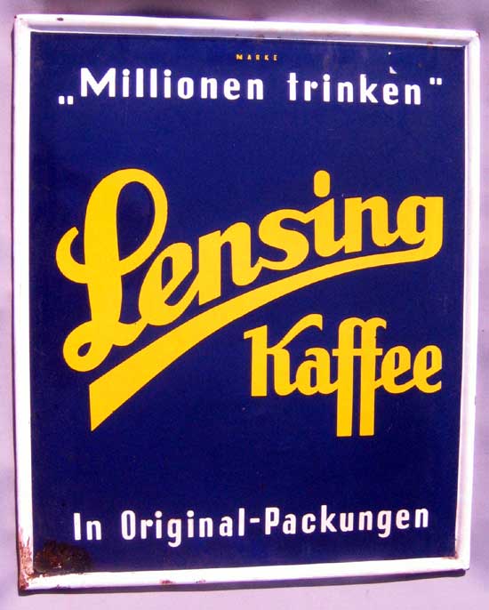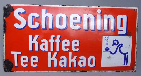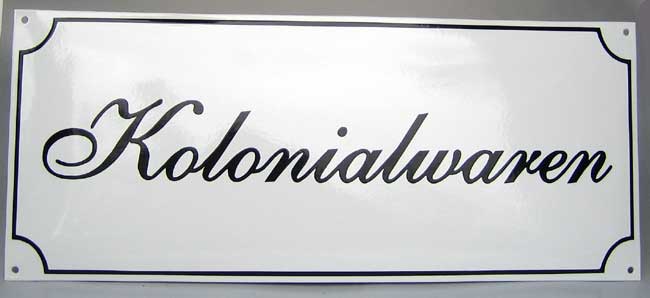 seltenes Emailleschild aus der Zeit der Kolonialwarenläden, ca 35 x 50 cm, um 1910, selten, z.T. Zuckerguß-Emaille Zustand 2- 380 Euro |