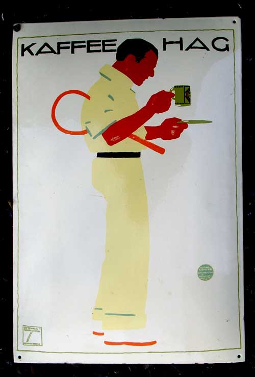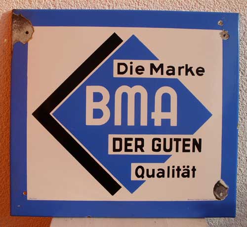 Emailleschild, gewölbt, ca 60 x 40 cm, aus dem hannoverschen Emaillierwerk um 1980, das Werk schloss einige Jahre später, nach einem Entwurf von Meister Hohlwein. Zustand 1 150 Euro |