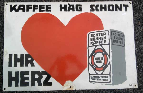 Emailleschild, gewölbt, um 1925, seltenes Schweizer Kaffeeschild, Zustand 2 390 Euro |