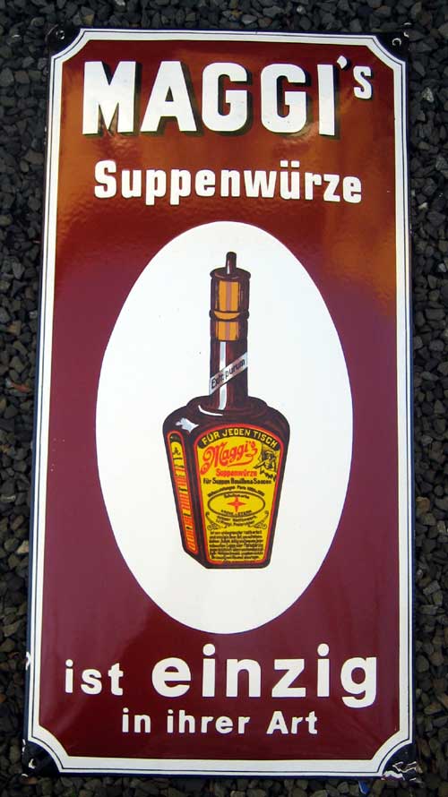 Emailleschild, gewlbt, ca 70 x 40 cm, 80er Jahre von MAggi neu aufgelegt, mittlerweile selten, Zustand 2 280 Euro |