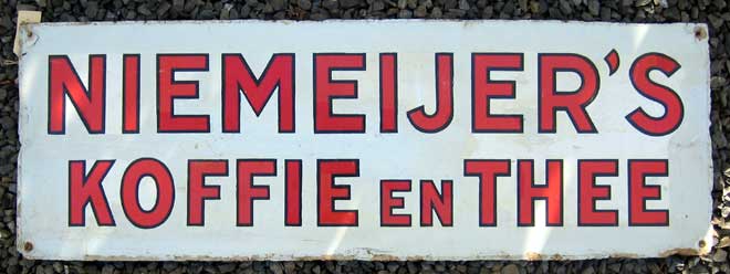 Emailleschild, flach, ca 70 x 25´cm, schloniert, NL um 1920, beidseitig emailliert Zustand 2 290 Euro |