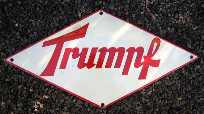 Emailleschild, abgekantet, seltene Trumpf Raute, Breitse ca 60 cm, Zustand 2 350 Euro |