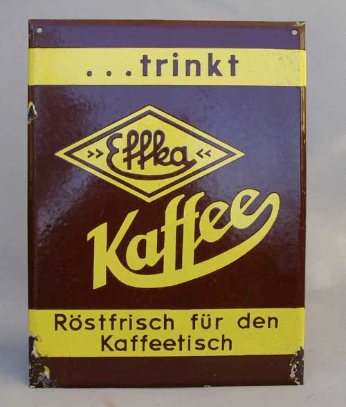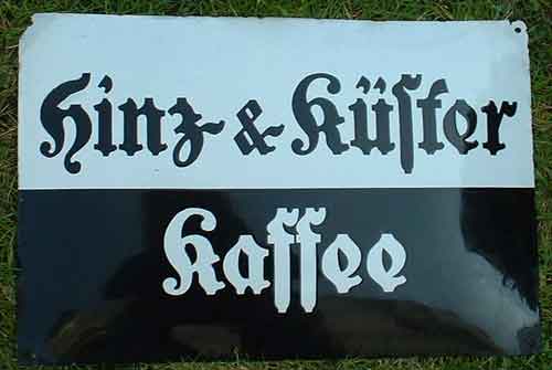 Hinz Küster Kaffee Emailleschild , gewölbt, 33 x 50 cm, selten, um 1920, kleinere Schäden gut passend übermalt Zustand 2 240 Euro |