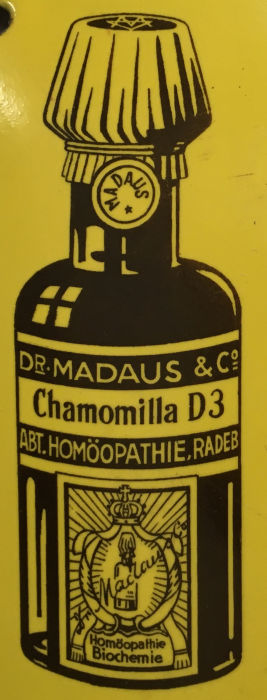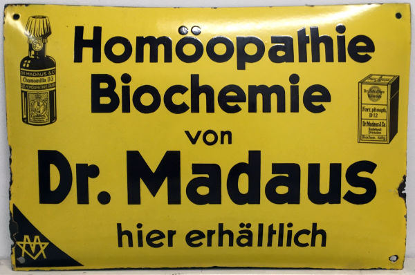 Homöopathie - Biochemie hier erhältlich Radebeul - Dresden Emailschild, Maße ca. 49 x 32 cm, gewölbt Zustand 2 1920'er Jahre Hersteller-Bez.: Union-Werke, Radebeul - Dresden Euro 320,- siehe Detailansicht der Produkte |