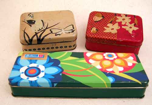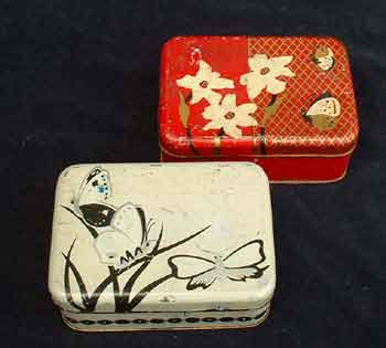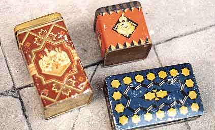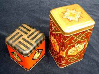 3 verschiedene Dosen der Firma, die hinteren stammen aus den 30er Jahren, die vordere ist noch nicht so alt Zustand 1 /2- zusammen 35 Euro inkl. Porto |