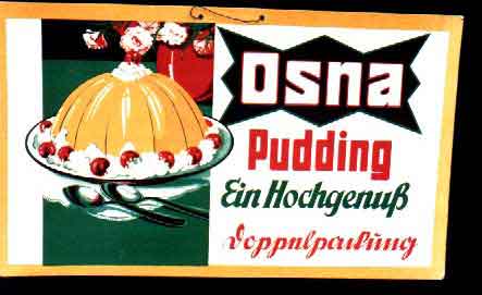 Osna Pudding schöne Werbepappe, ca 40 x 25 cm Zustand 2 Stück 5 €uro bei Abnahme von 10 Stück = 50 Euro |