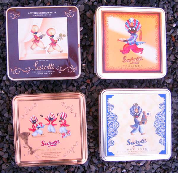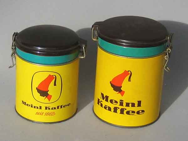 2 schöne Kaffedosen mit der Abbildung des bekannten Mohren, Höhe 15cm und 18cm Zustand 2 zusammen 70 Euro |