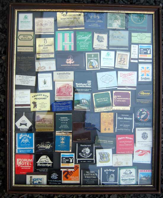 Streichhölter Heftchen gerahmt, früher ein beliebtes Sammlethema