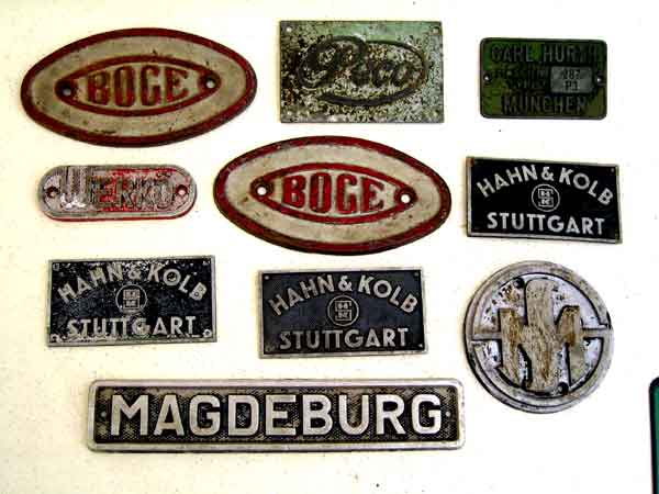 uralte Firmenschilder, Boge, Werko, Pego, Hahn & Kolb, Magdeburg, Carl Hurth München Zustand 2 (können noch aufpoliert werden) Stück 20 Euro inkl. Versand |