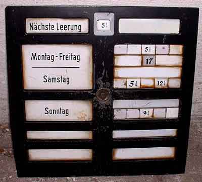 Briefkasten - Anzeigeschild	 schönes Gußschild mit verstellbaren , emaillierten Segmenten, die mit einem Vierkant gedreht werden, 23 x 23 cm, wunderbar dekorativ an jeder Theke, aknn auch eingebaut werden Zustand 2-3 EURO 190,-  |