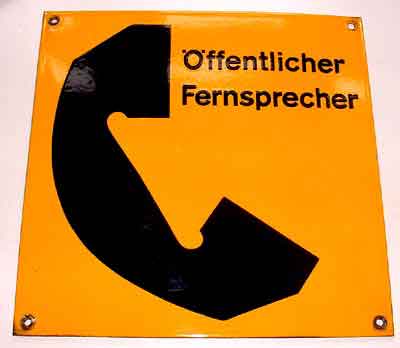 Fernsprecher                flaches schabloniertes Emailschild, ca. 40 x 40 cm Zustand 2 150 Euro  |