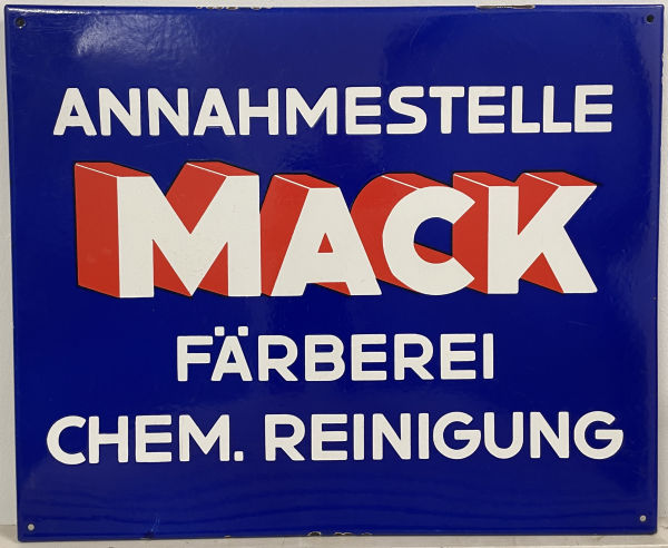 Färberei Chem. Reinigung Annahmestelle Emailleschild, 55 x 45,5 cm, abgekantet 1950'er Jahre Zustand 1+ Euro 90,- |